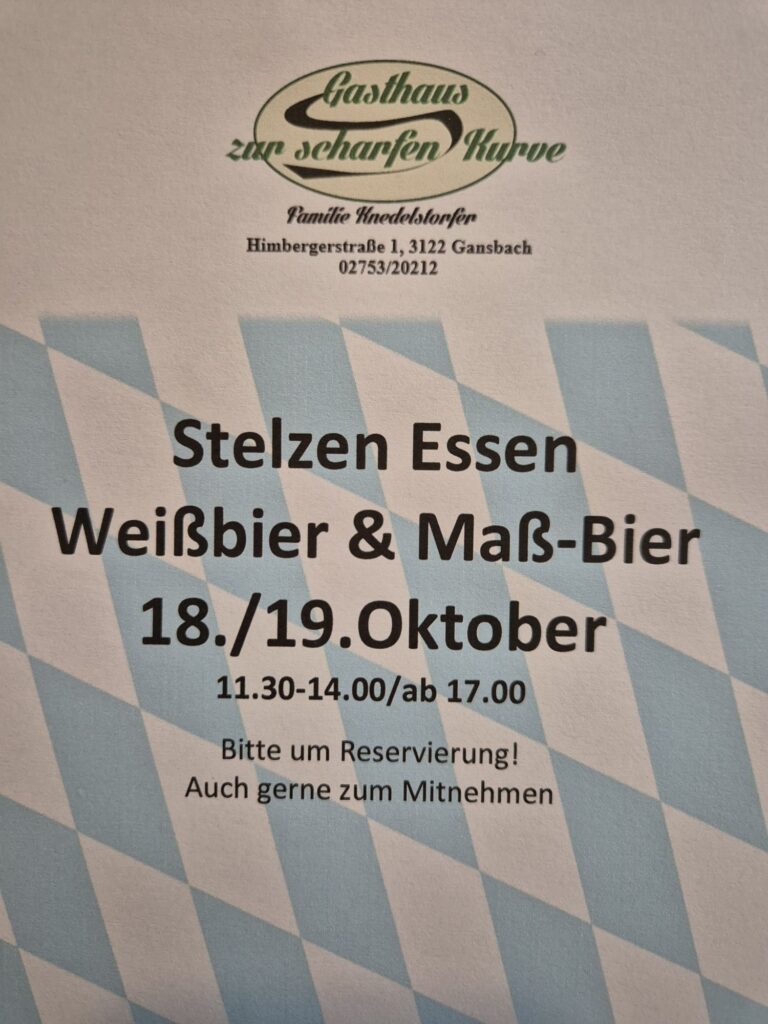 Am 18./19.Oktober mit Stelze, Weissbier&Massbier!