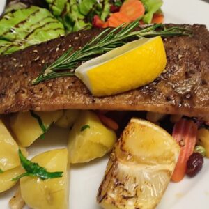 Frisches Lachsforellen Filet mit Bärlauchrisotto von der Fischzucht Thorhof!